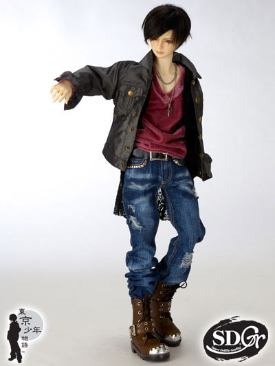 Ryoya was the first SD Graffiti boy to be released. His body is an upgraded version of the SD13 boy body, with the jointing system and stylistics based on the SD17 boy body. He has the same hands and feet parts as the SD13 boy body, and he is the same height and with the same overall basic measurements, so he can wear SD13 boy clothing without problem. However he seems to be somewhat slimmer overall in the torso region. Like the SD17 boy, he has a double-jointed torso, double-jointed elbows, double-jointed knees, and a swivel thigh joint.